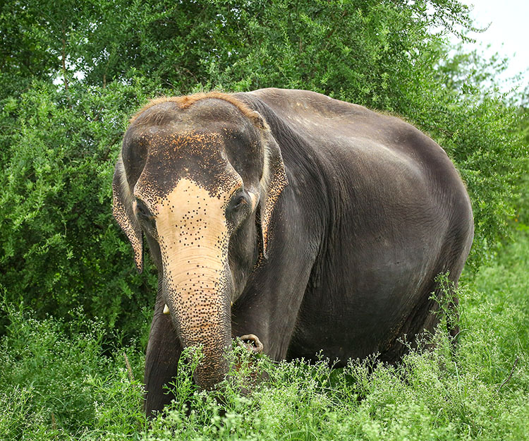 Abused as a begging elephant for over five decades and subsequently blinded from the beatings, Karma came to us with a litter of bullhook wounds on her body and fused joints in her hind legs. Despite this all, she maintained a calm demeanour when she took her first steps of freedom at the Wildlife SOS centre. The transformation in her personality from a stoic elephant to an affectionate one was brilliant, and she thrived after being introduced to her new friends Holly and Kalpana.