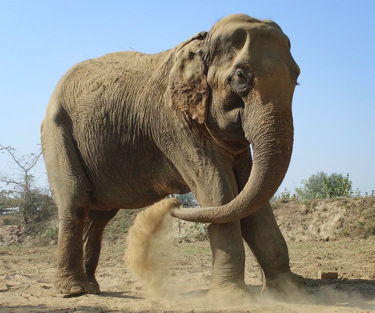 With the love and medical care provided by our veterinary team and her caregiver, Asha blossomed into a joyous elephant. She would spend her days taking long dust baths, munching on jaggery and beetroot, and going for strolls next to the Yamuna river. Asha’s joyous spirit was so infectious that it transformed anyone it came into contact with. As luck would have it, Asha’s soaring spirit found Suzy and Lakhi, two blind elephants searching for a ray of hope. It took Suzy and Lakhi finding Asha to begin a new era in their lives, filled with compassion and healing.