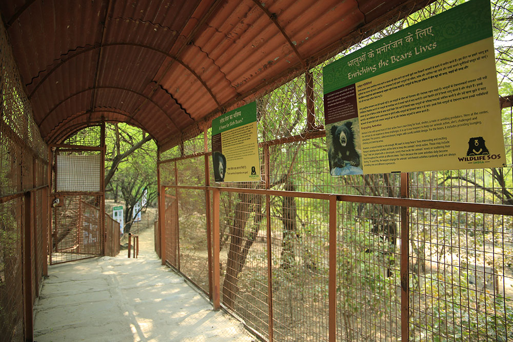 In Agra, each rescued bear undergoes a 90-day quarantine period during which they are given a complete health checkup and treated for any diseases, wounds, and parasites. The bear is vaccinated against rabies, leptospirosis, and infectious canine hepatitis. After the quarantine period, the bears have access to large socialisation enclosures where the behaviour and personality of each bear is closely monitored by the Wildlife SOS vets and staff.
