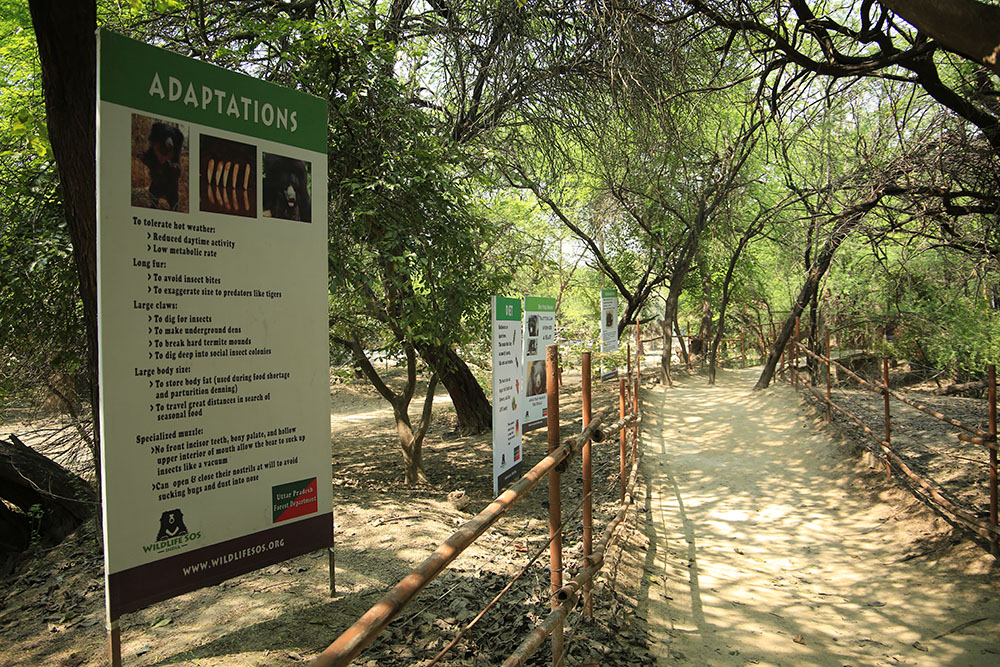 The Agra Bear Rescue Facility is the largest sloth bear rescue facility in the world. Established in 1999 by Wildlife SOS in collaboration with the Uttar Pradesh Forest Department, it currently houses 89 sloth bears as well as many other species of wildlife in large forested enclosures with ponds and shady trees. The facility undertakes advanced research, disease management and provides specialised veterinary as well as geriatric care for sloth bears.