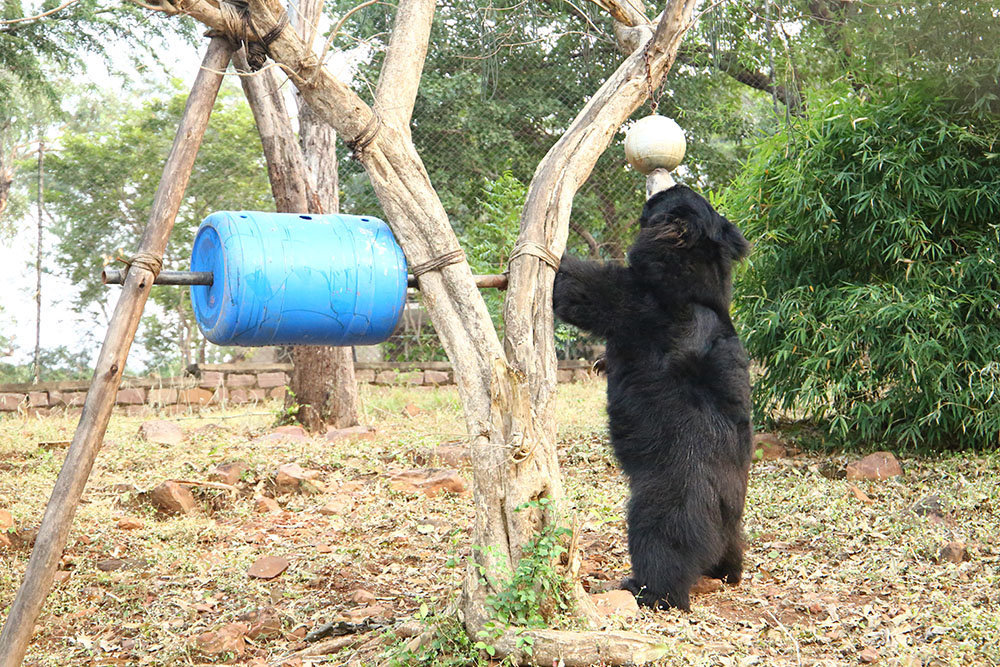 VVBRF was created in collaboration with the Madhya Pradesh Forest Department in the Van Vihar National Park, Bhopal; it is now home to over 20 sloth bears. These bears were rescued from/handed over by their Kalandar masters after months of intensive work with the community, or they were handed over by the forest department for long-term care and treatment. The rescued animals suffer from health problems such as tumours and tuberculosis; problems of malnutrition and dehydration; cataracts and opacity of vision; muzzle injuries, maggot wounds, and ulcerations in the mouth, and severely broken teeth.