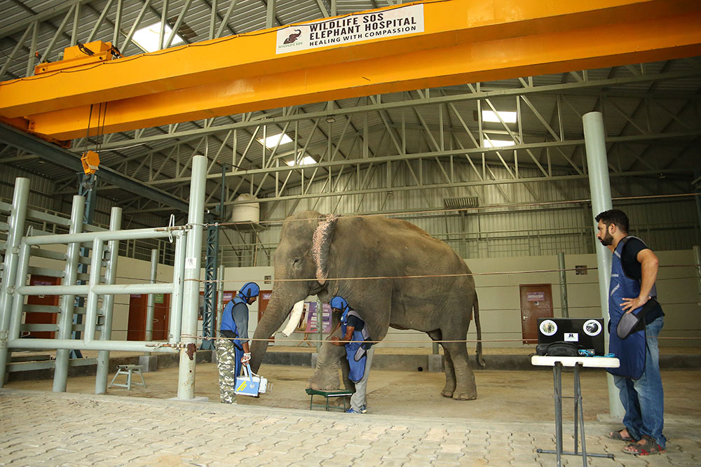In keeping with the organisation’s objectives to rescue and rehabilitate elephants from abuse and captivity and provide them with the best quality medical care available, Wildlife SOS constructed the country’s first hospital specially designed to treat injured, sick or geriatric elephants. The Elephant Hospital is equipped to test and diagnose elephants for a host of diseases and pathogens with an inbuilt path lab, deal with emergency situations with a hoist and support structure, and quarantine the elephant for required durations to avoid the spread of diseases. Regular veterinary check-ups are enabled through the weighing scale and treatment pen, along with space to treat an elephant for longer durations if needed.