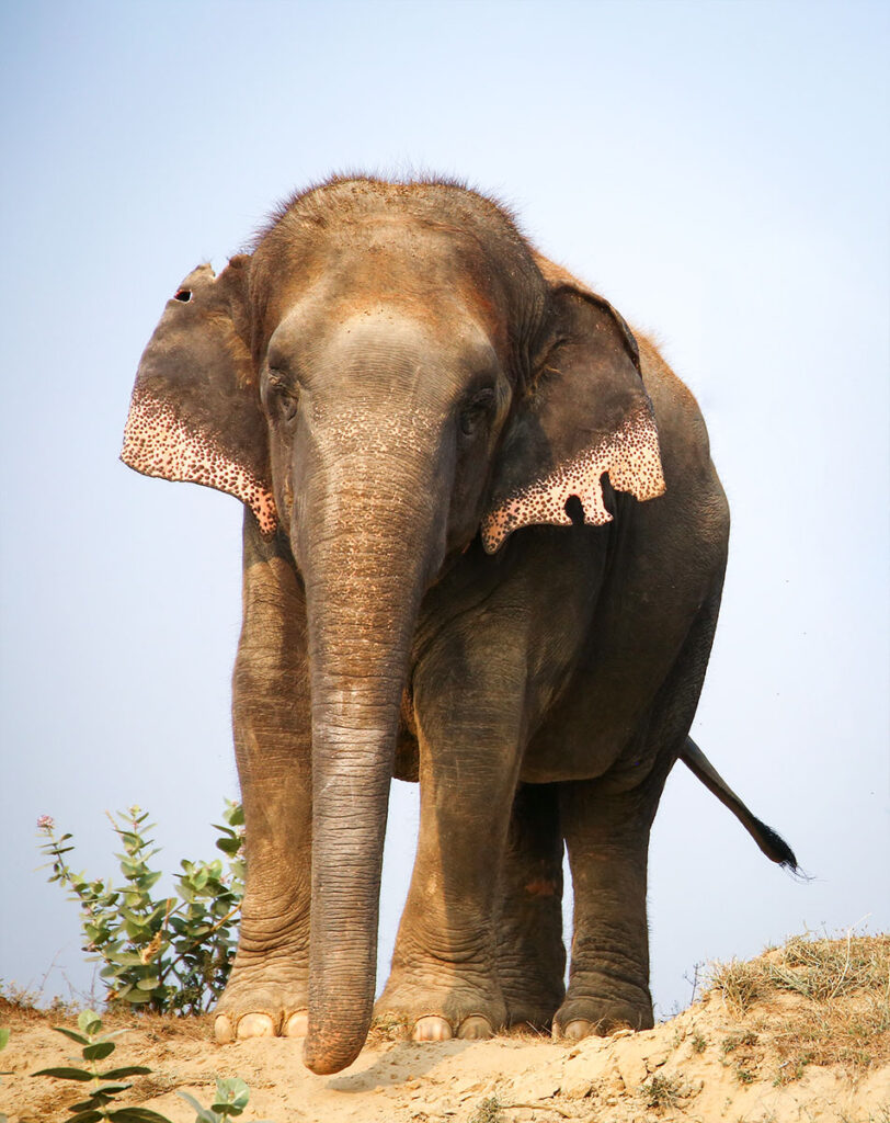Chanchal miraculously survived an accident on a highway in Noida, Uttar Pradesh, where a truck collided with her and left her with a permanently diffused left hind joint. Her body was also covered with scars from injuries sustained in the past. Chanchal’s healing journey has been no less than an inspiring and courageous one. While she could barely stand after the accident, her spirit was not broken, and she recovered to become an elephant who now makes a dash towards her pipe-feeder each time it is filled with yummy dates!