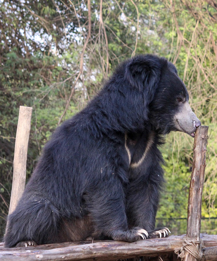 Background: Kabilan was a ‘dancing’ bear who was rescued and brought to the Agra Bear Rescue Facility. The young bear had witnessed cruelty, and was found to be extremely weak and malnourished. He was suffering from terrible pain due to a muzzle infection that was caused by the constant tugging of the rope pushed through his delicate muzzle. With care and medical treatments, Kabilan’s health improved and his muzzle healed as well. | READ MORE ABOUT KABILAN