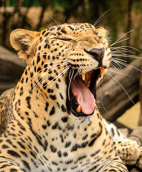 Ganesh was soon introduced to another blind leopard that was rescued from human-wildlife conflict, Vitthal, and the two formed an incredible bond of companionship. Losing sight has not prevented Ganesh from jumping around the logs and platforms present in his forested enclosure. He climbs up right on to the second level of his platforms to relax in the sun!