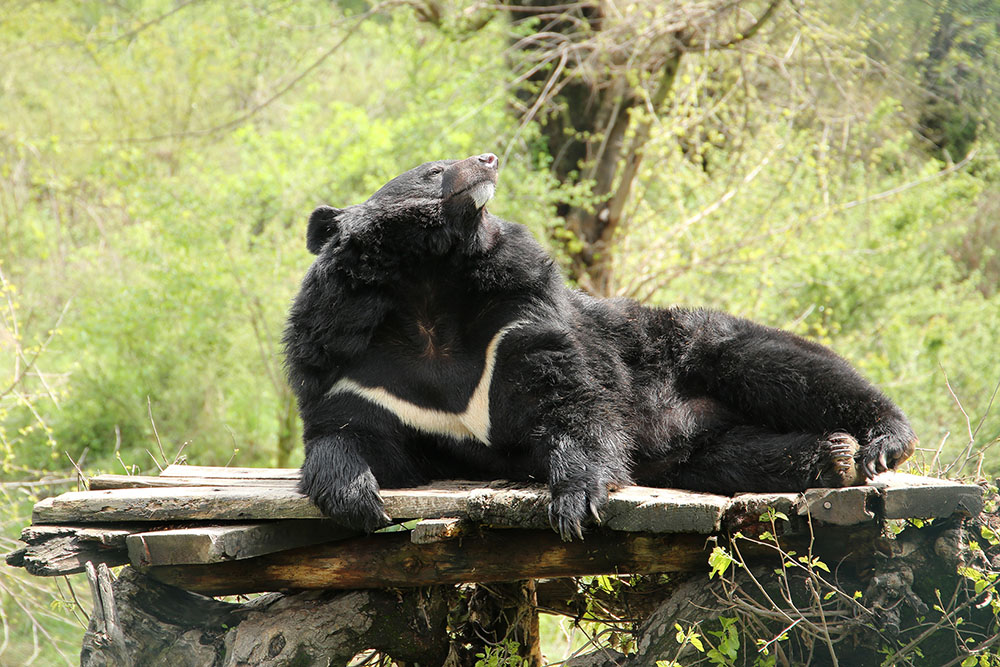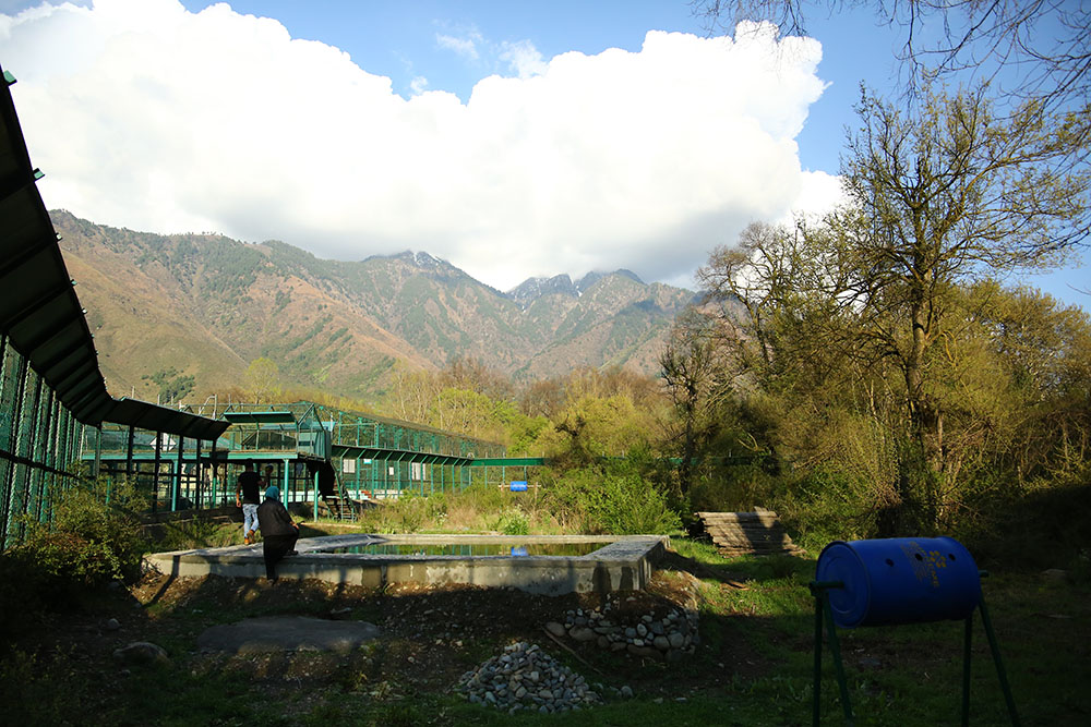 The Dachigam Rescue Centre was established by the Government of Jammu and Kashmir and the responsibility for the upkeep of the rescued/abandoned bears was bestowed upon Wildlife SOS in 2007. The centre at Dachigam currently has four Asiatic black bears and one Himalayan brown bear. The centre is located at the foothills of Dachigam National Park and serves as a great pleasure for the visitors and students from the educational institutions. The facility creates positive impacts such as raising awareness among the people about bears which is helpful in mitigating human-bear conflict and the important role bears play in maintaining ecological balance. The topography of the centre and a large number of huge trees inside the spacious enclosures give the resident animals a perfect environment to camouflage and retain their wild behaviour.